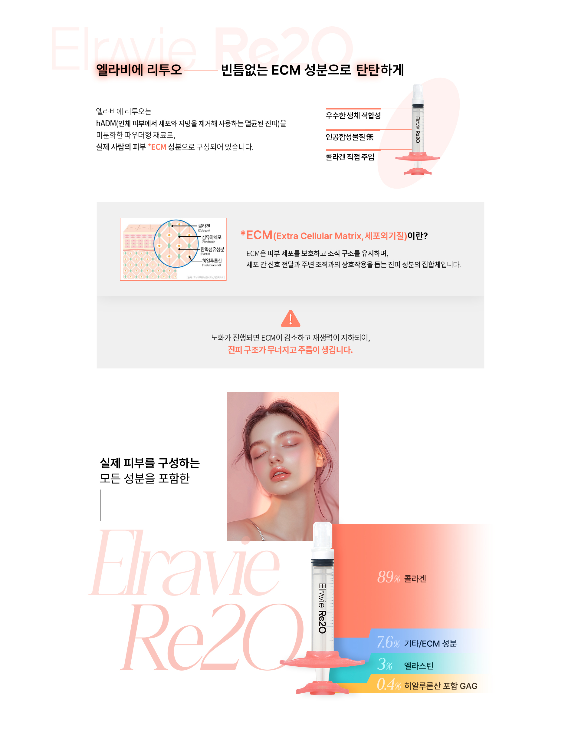 실제 피부를 구성하는 모든 성분을 포함한 Elravie Re2O