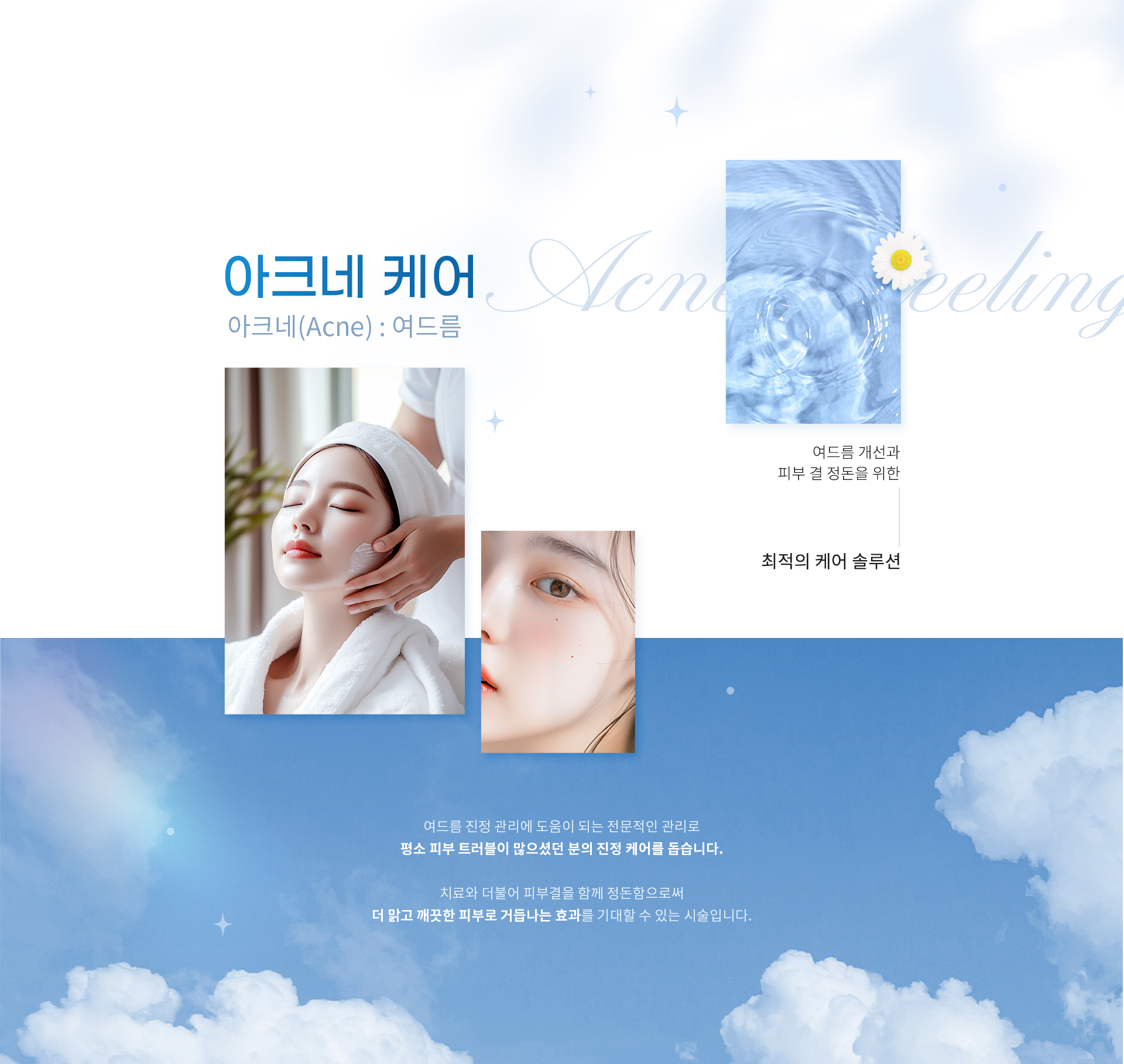 여드름 진정 관리에 도움이 되는 전문적인 관리로 평소 피부 트러블이 많으셨던 분의 진정 케어를 돕습니다.
